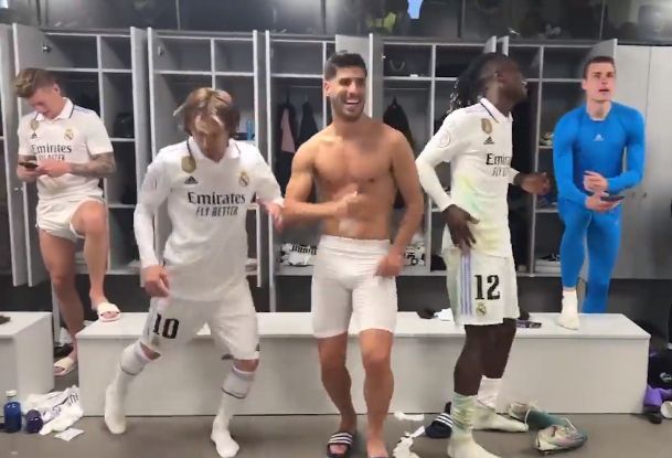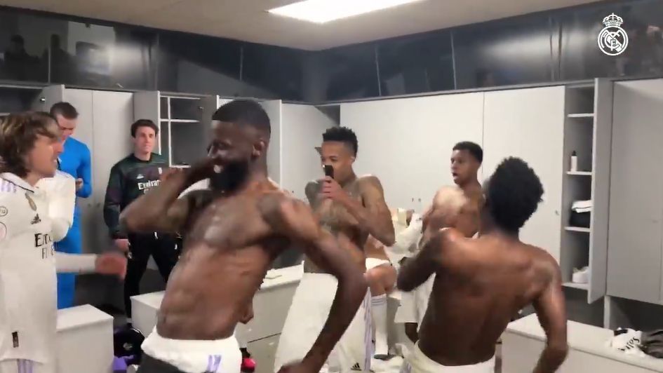 赛后,皇马一众球员在更衣室又唱又跳庆祝胜利,米利唐、吕迪格、维尼修斯等球员领衔舞团,舞姿相当风骚,一旁的莫德里奇也摇摆起来了。