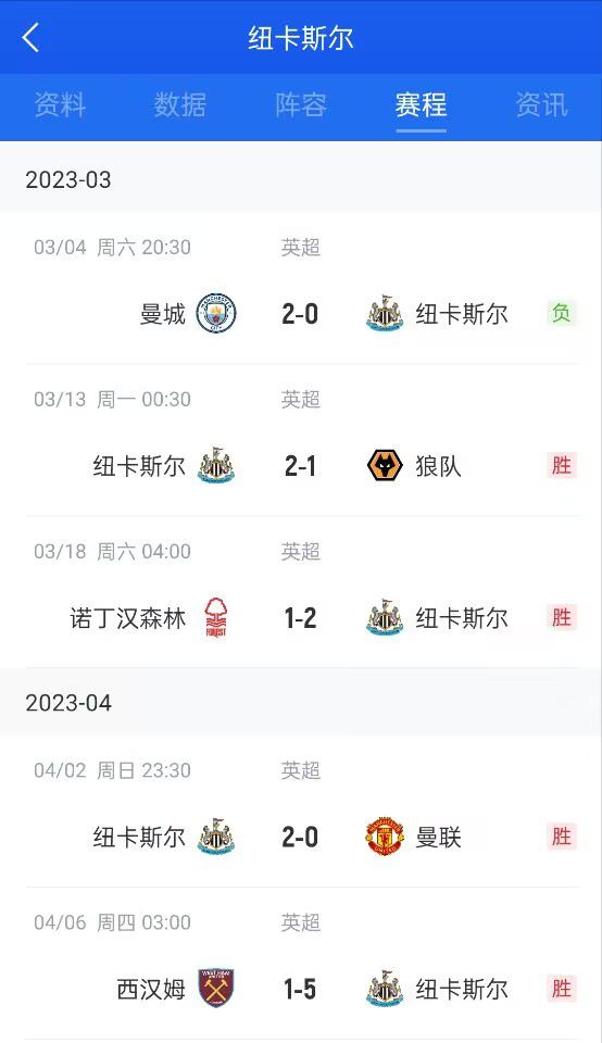 玩球网4月6日讯英超第7轮补赛,纽卡客场5-1大胜西汉姆联,威尔逊、乔林顿双响,伊萨克建功。纽卡凭借一波四连胜走出2-3月的不胜,凭借净胜球力压曼联排名英超第三。纽卡剩余赛程↓