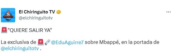玩球网4月7日讯西班牙六台记者EduAguirre在六台节目上独家爆料,姆巴佩现在就想离开巴黎!今年24岁的姆巴佩和巴黎的合同将在2025年6月到期,目前德转身价1.8亿欧。本赛季他为巴黎出战34场,