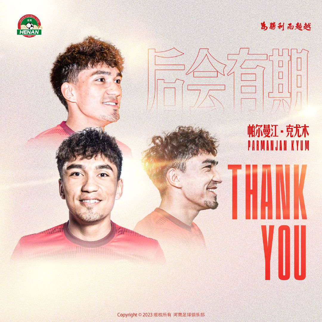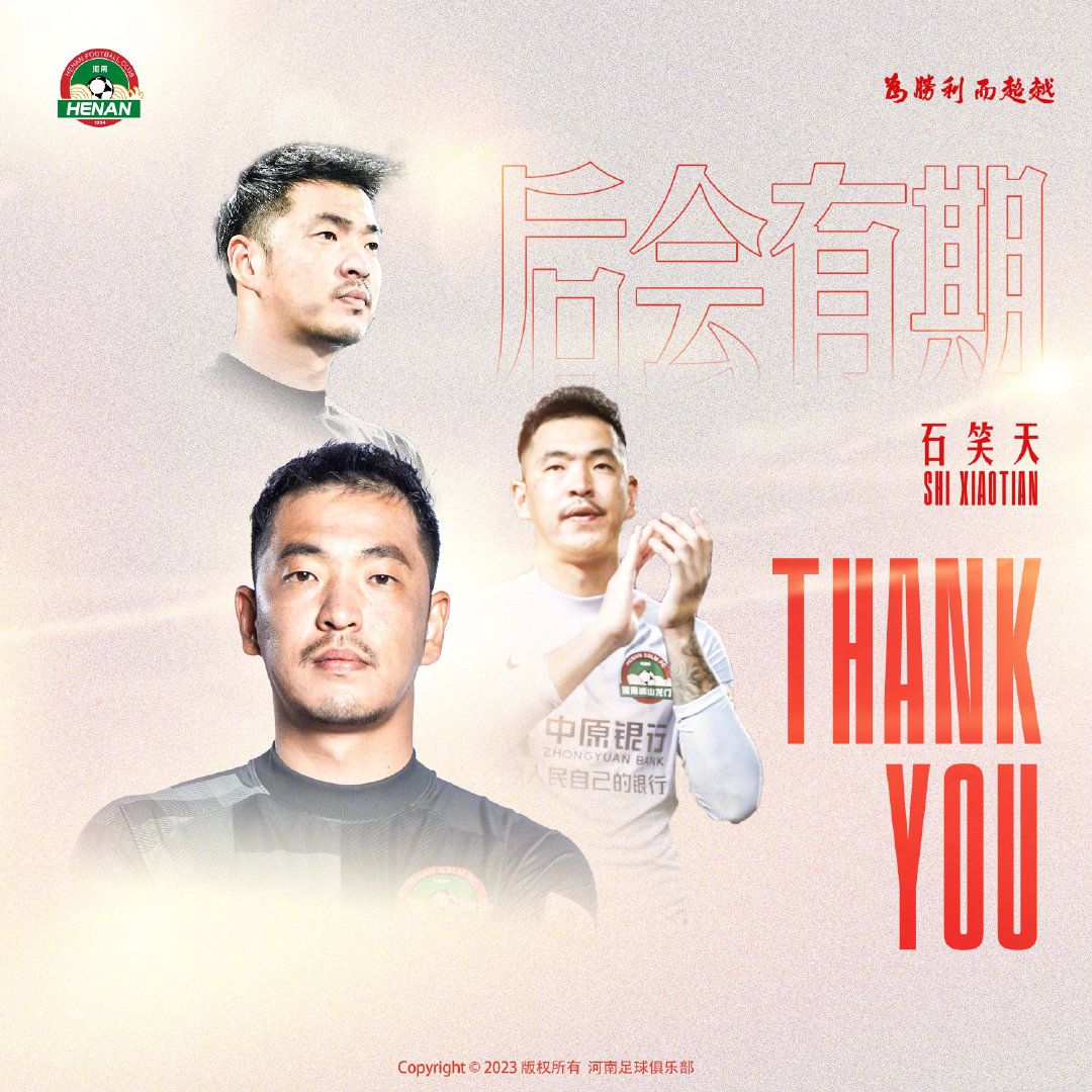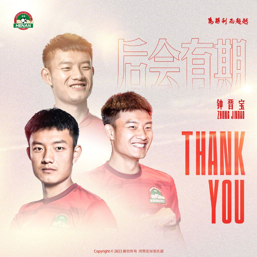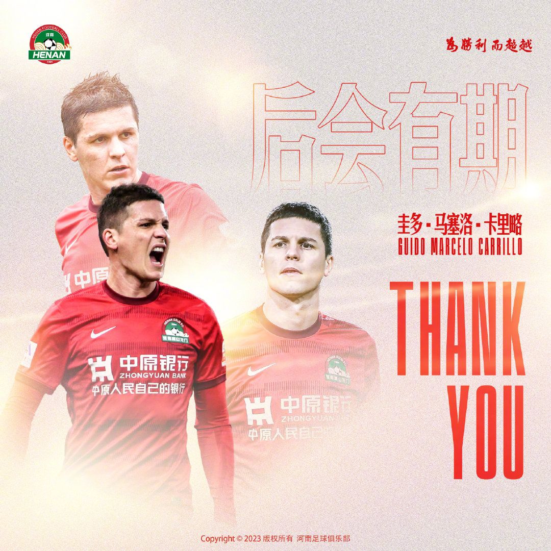 经双方协商一致,钟晋宝、马兴煜、冯博轩、赵宏略、圭多·马塞洛·卡里略、石笑天、徐世龙和帕尔曼江·克尤木(租借回归)八名球员与河南足球俱乐部的合同到期终止,正式离队。希望你们在以后的职业生涯中再创辉
