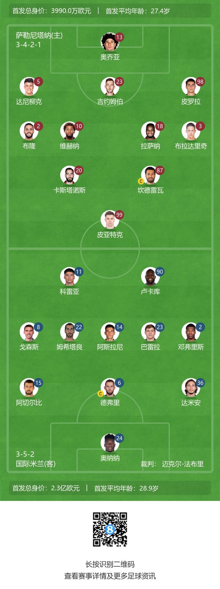 玩球网4月7日讯意甲第29轮,国际米兰客战萨勒尼塔纳,赛前首发阵容公布。 国米首发:24-奥纳纳、6-德弗里、8-戈森斯、15-阿切尔比、36-达米安、2-邓弗里斯、14-阿斯拉尼、22-姆希塔良、23-巴雷拉、11-华金-科雷亚、90-卢卡库 国米替补:1-汉达诺维奇、40-博蒂斯、5-加利亚尔迪尼、9-哲科、10-劳塔罗、12-贝拉诺瓦、32-迪马尔科、45-卡博尼、46-扎诺蒂、77-布罗佐维奇、95-巴斯托尼 萨勒尼塔纳首发:13-奥乔亚、2-布隆、3-布拉达里奇、5-达尼柳奇、23-吉约姆伯、98-皮罗拉、10-维列纳、18-拉萨纳-库利巴利、20-卡斯塔诺斯、87-坎德雷瓦、99-皮亚特克 萨勒尼塔纳替补:1-费奥里洛、33-塞佩、6-桑比亚、8-博希宁、9-博纳佐利、11-博泰姆、14-迭戈-瓦伦西亚、15-埃孔、29-迪亚、39-艾弗利诺、41-卡维利亚、66-洛瓦托 本轮赛前,国米积50分位居积分榜第四,身后的罗马积同分,亚特兰大和尤文则分别落后两分和六分,欧战席位争夺十分焦灼。 (key39) |