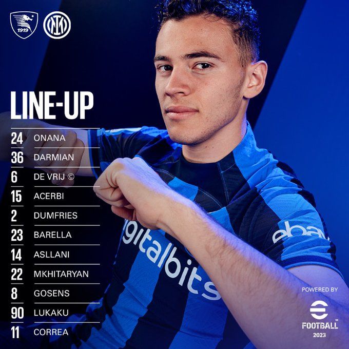 玩球网4月7日讯意甲第29轮,国际米兰客战萨勒尼塔纳,赛前首发阵容公布。国米首发:24-奥纳纳、6-德弗里、8-戈森斯、15-阿切尔比、36-达米安、2-邓弗里斯、14-阿斯拉尼、22-姆希塔良、23