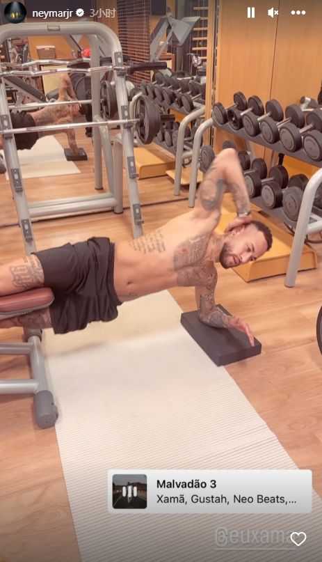 玩球网4月8日讯内马尔更新社媒动态,晒出自己在健身房进行恢复性训练的照片和视频。内马尔因伤缺席了巴黎近6轮法甲比赛,以及对阵拜仁的欧冠次回合比赛,他的复出日期成为球迷和媒体关注的问题,这位巴西国脚更新