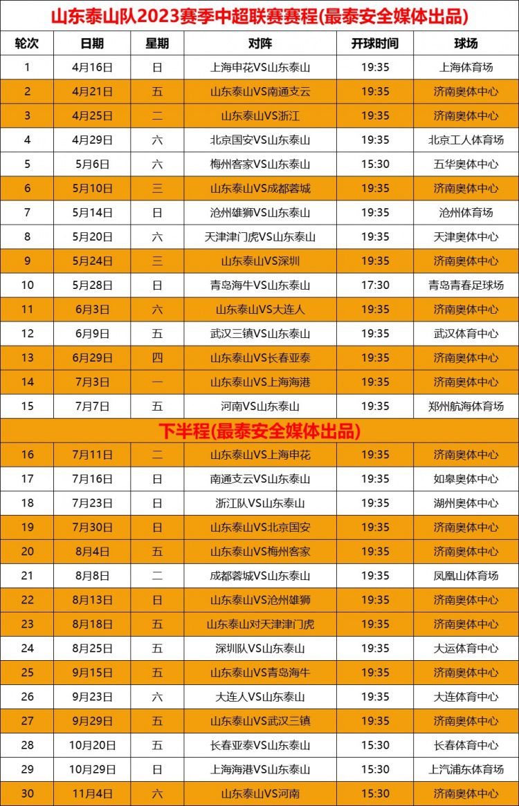 玩球网4月8日讯中超新赛季赛场出炉,山东泰山新赛季的15个主场比赛只有4场是安排在周末进行。 山东泰山4个在周末进行的主场分别为6月3日山东泰山主场迎战大连人、7月30日山东泰山主场迎战北京国安、8月13日山东泰山主场迎战沧州雄狮以及联赛最后一轮山东泰山在11月4日主场迎战河南队。 图源:最泰安全媒体 (任意门) |