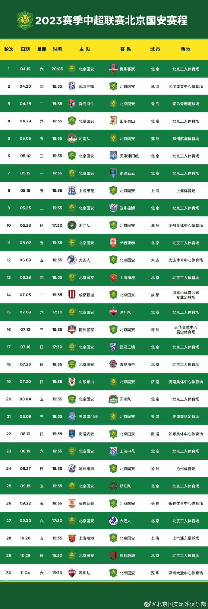 2023赛季中超联赛赛程公布!4月15日,新工体,我们一起战斗!