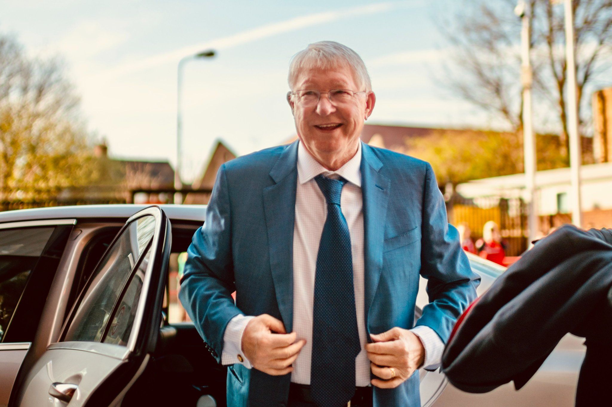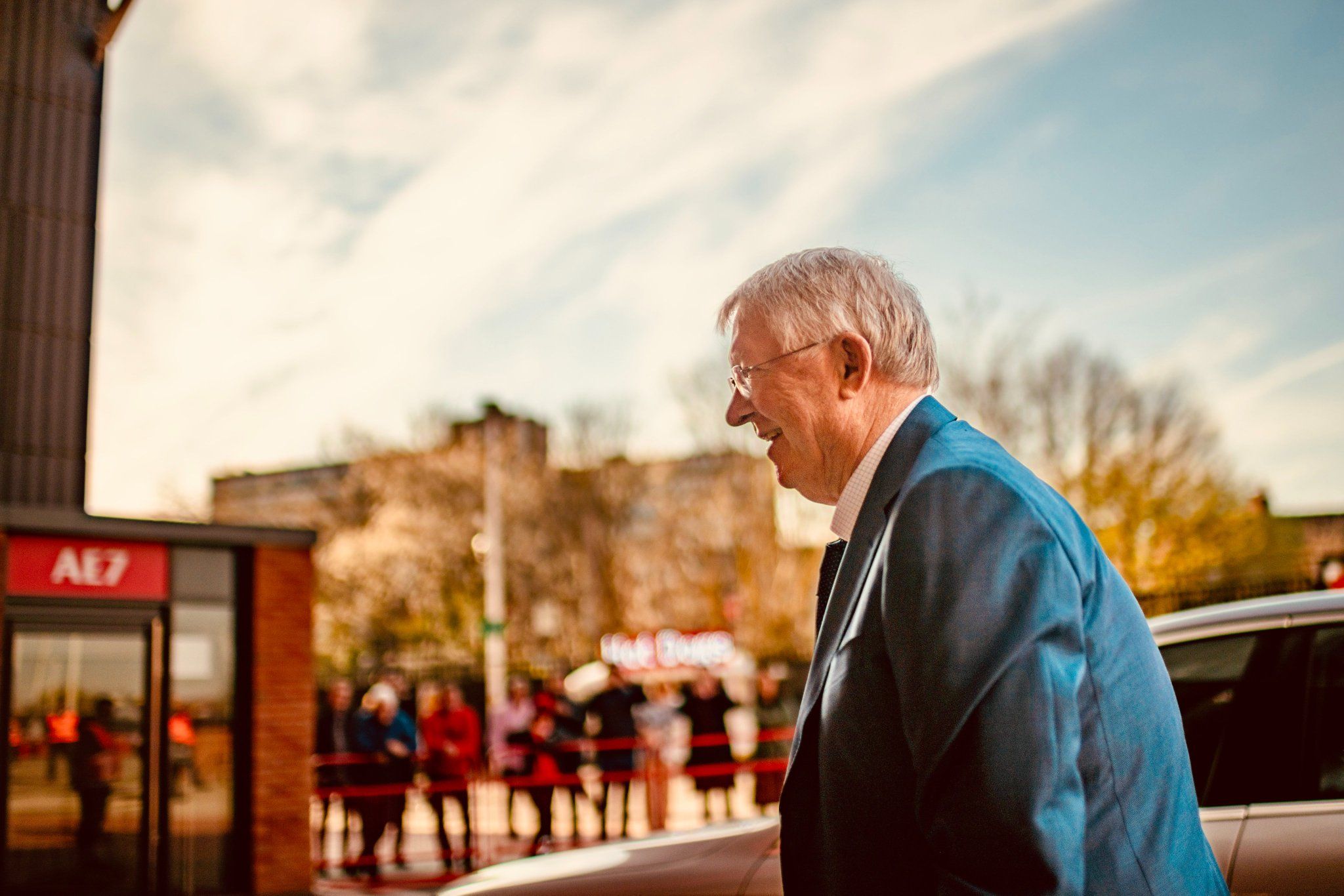 喜笑颜开????弗格森提前2小时来到老特拉福德:欢迎回家!BOSS!