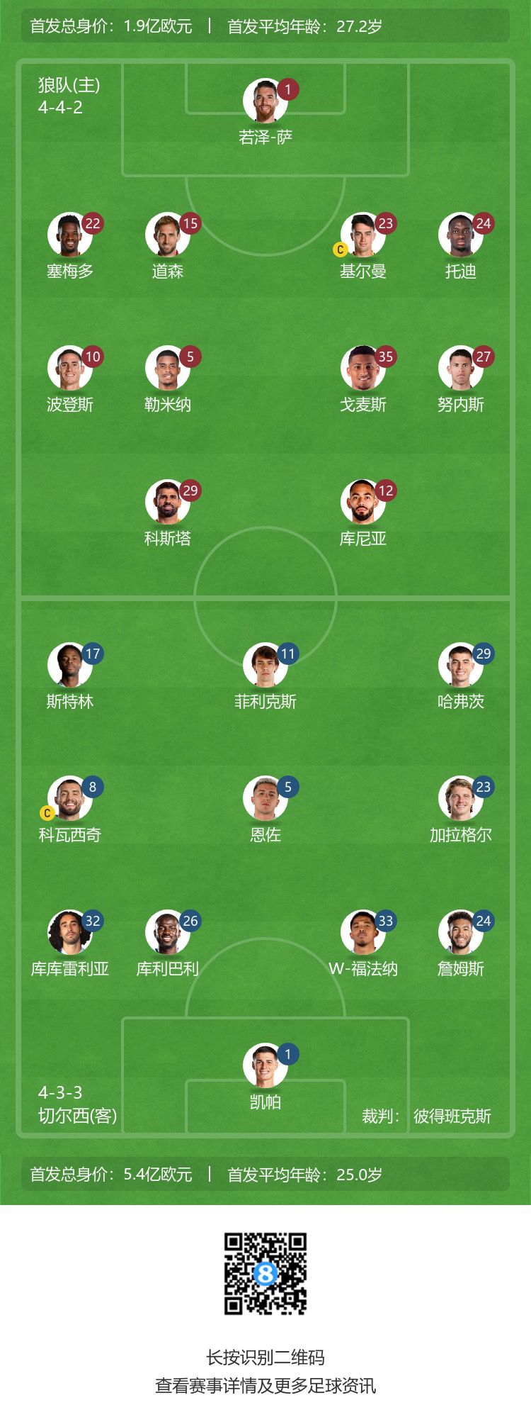 玩球网4月8日讯 北京时间22点,英超第30轮,切尔西客场挑战狼队。赛前双方首发已经公布!本场比赛也是切尔西临时主帅兰帕德“二进宫”的首秀,迭戈-科斯塔面对旧主,奥巴梅扬重回名单,坎特缺席是因为轮休。 切尔西首发:1-凯帕、24-里斯-詹姆斯、33-韦斯利-福法纳、26-库利巴利、32-库库雷利亚、5-恩佐、8-科瓦西奇、23-加拉格尔、11-菲利克斯、17-斯特林、29-哈弗茨 切尔西替补:16-爱德华-门迪、4-巴迪亚西勒、14-查洛巴、21-奇尔维尔、12-奇克、20-扎卡里亚、9-奥巴梅扬、10-普利西奇、15-穆德里克 狼队首发:1-若泽-萨、15-道森、22-塞梅多、23-基尔曼、24-托迪、5-勒米纳、27-努内斯、35-若昂-戈麦斯、10-波登斯、12-库尼亚、29-迭戈-科斯塔 狼队替补:25-本特利、4-柯林斯、64-布埃诺、28-穆蒂尼奥、59-霍奇、21-萨拉维亚、7-内托、11-黄喜灿、37-特劳雷 目前英超积分榜上,切尔西10胜9平10负积39分,位列第11;狼队7胜7平15负积28分,位列第14,仅高出降级区1分。双方本赛季首次交锋中,切尔西3-0战胜狼队。 |