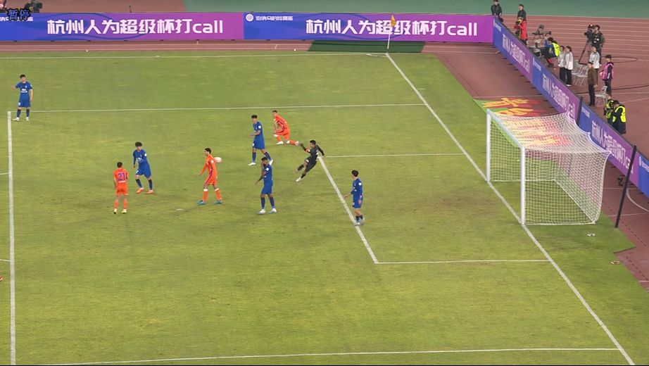 玩球网4月8日讯超级杯武汉三镇vs山东泰山,比赛第81分钟,刘殿座超级超级巨大失误,开大脚打到费莱尼背上,刘彬彬破门,但VAR介入判罚越位在先。根据《足球竞赛规则》,越位线的划定是按照“倒数第二名防守