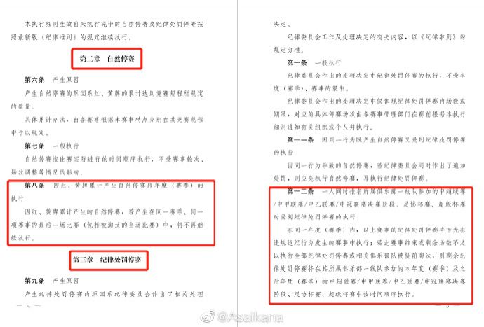 咋说都不听呢。。。。关于跨赛事停赛的执行,在《中国足球协会关于违规违纪的停赛执行细则》(足球字[2022]88号)文件里。红牌是自然停赛一场,赛事结束自然停赛自动消除,超级杯只有一场,所以就自然消除了。但如果是纪律处罚追加的罚单,就得在下一个赛事里继续执行。所以判断是否中超首轮停赛,关键就在于,孙准浩的犯规会不会触发纪律处罚。(放心不会因为王小平进去了就没人签罚单了,纪律委员会职能还在) 个人经验判断,这个犯规多半是“过分力量的严重犯规”,程度不至于触发追加纪律处罚。如果是非常严重的“野蛮力量”的犯规,根据纪律准则当然是可以追加一场停赛的。请注意“可以”这个定义,严重的可以追加,也可以不追加。这一切还要看当值裁判是如何定义这个犯规,以及纪律委员会的评议结果。 |