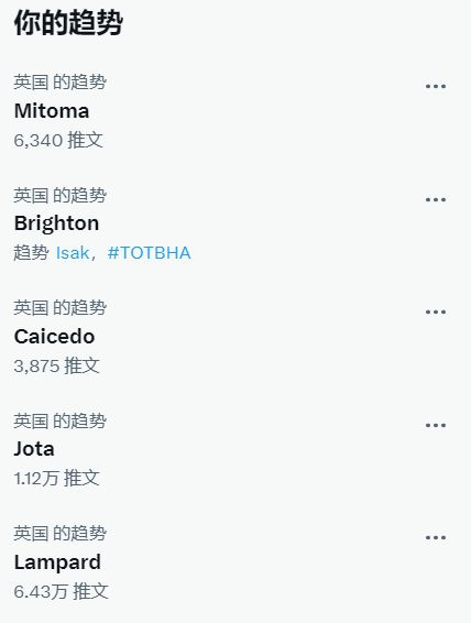 比赛未完场时,三笘薰这一词条已经冲上推特英国区热榜第一。