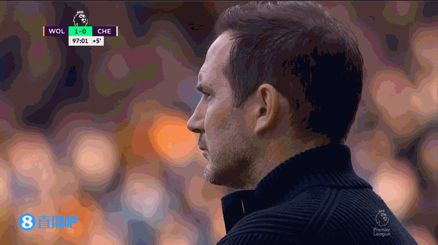 玩球网4月8日讯英超第30轮,切尔西客场0-1不敌狼队,兰帕德“二进宫”首秀开门黑。下半场补时最后时刻,转播镜头拍到兰帕德面沉似水,而狼队主帅洛佩特吉则在激情指挥。