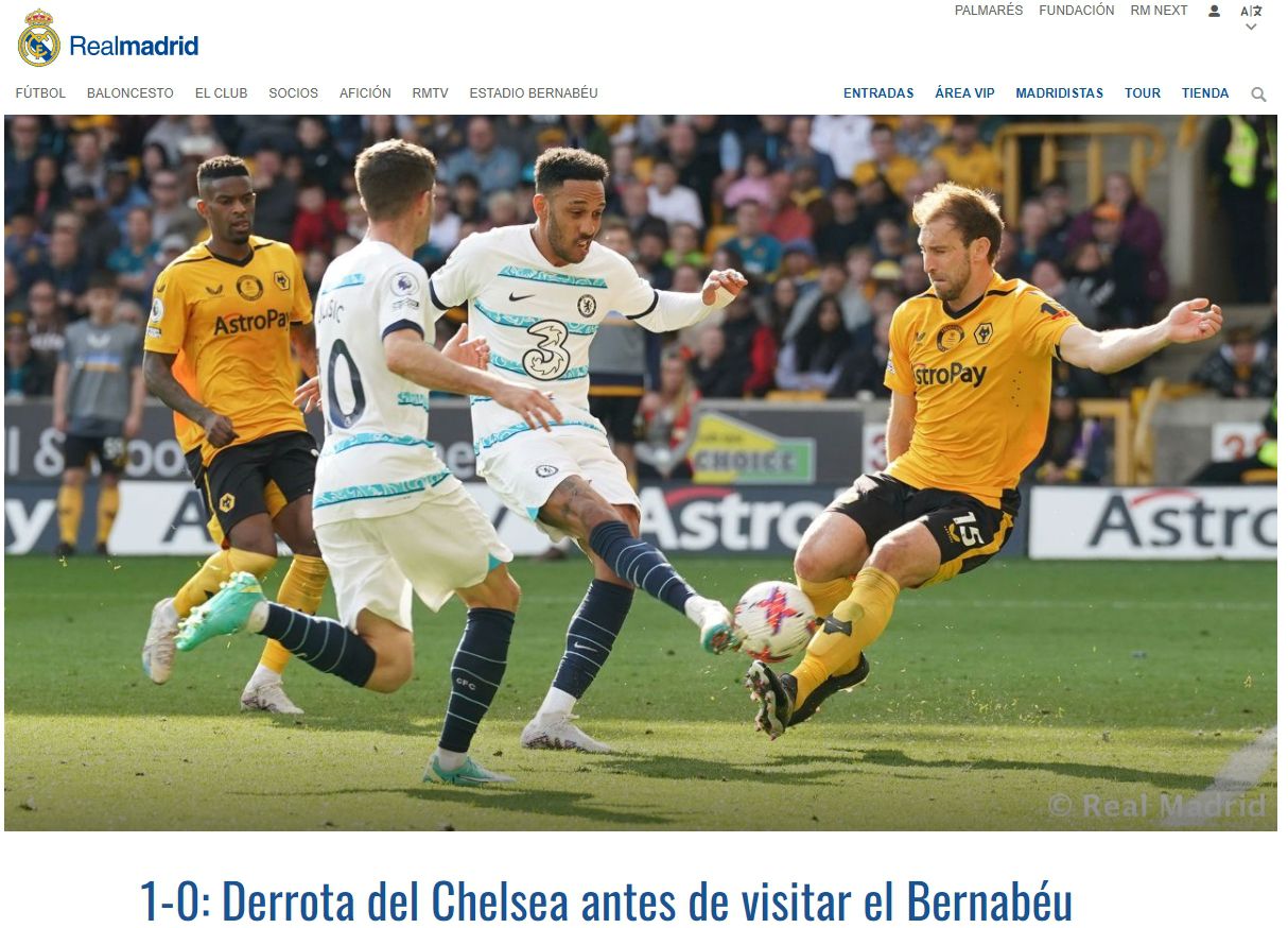 玩球网4月9日讯北京时间下周四凌晨的欧冠1/4决赛首回合,皇马将在伯纳乌迎战本赛季处在动荡之中的切尔西。本场比赛之前,皇马显然会关注对手的表现,但切尔西本轮遭遇输球,以0-1的比分不敌狼队。皇马官网专