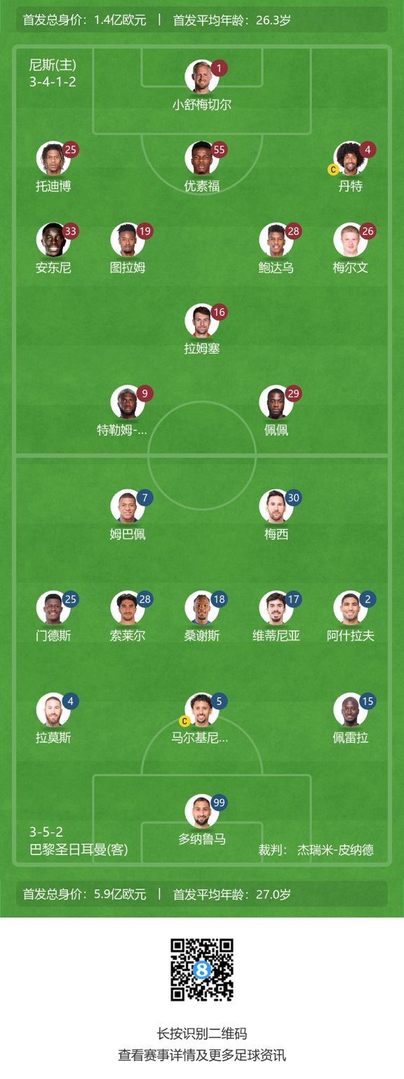 玩球网4月9日讯法甲第30轮,巴黎圣日耳曼客战尼斯。赛前首发名单公布。 巴黎首发:99-多纳鲁马、2-阿什拉夫、15-达尼洛-佩雷拉、4-拉莫斯、5-马尔基尼奥斯、25-努诺-门德斯、18-桑谢斯、28-索莱尔、17-维蒂尼亚、30-梅西、7-姆巴佩 巴黎替补:90-莱特利尔、16-里科、31-比施亚布、8-法比安、35-加尔比、33-埃梅里、37-乌斯尼、44-埃基蒂克 尼斯首发:1-舒梅切尔、4-丹特、25-托迪博、33-安托万-门迪、26-巴德、55-恩达伊希米耶、16-拉姆塞、19-齐夫伦-图拉姆、28-布达维、9-特雷姆-墨菲、29-佩佩 尼斯替补:90-布尔卡、38-阿姆拉维、8-罗萨里奥、11-巴克利、21-贝卡贝卡、37-贝拉耶亚内、14-布拉希米、24-拉波德、35-布阿纳尼 (不吃白菜) |