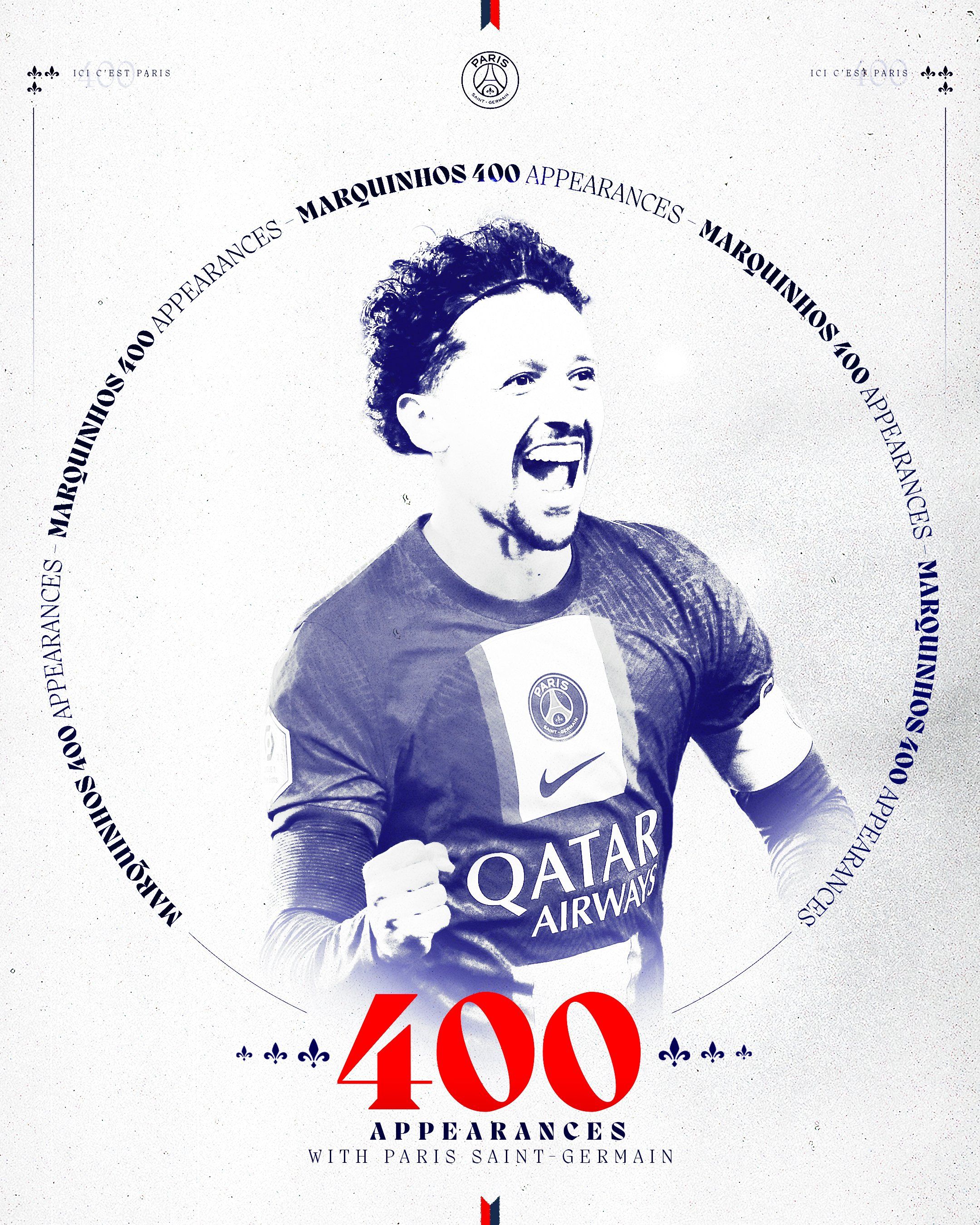 玩球网4月9日讯法甲第30轮比赛,巴黎圣日耳曼前往客场挑战尼斯。本场比赛,巴黎圣日耳曼后卫马尔基尼奥斯首发登场,迎来自己在法国首都俱乐部的400场里程碑之战。马尔基尼奥斯现年28岁,巴西中卫于2013
