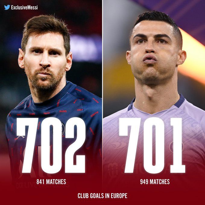 玩球网4月9日讯法甲第30轮,巴黎圣日耳曼客战尼斯。梅西禁区内抢点轻松推射破门。据统计,梅西在欧洲俱乐部生涯共打入702球,少踢108场比赛的情况下超越C罗701球。