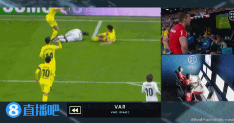 玩球网4月9日讯西甲第28轮,皇马vs黄潜第85分钟,黄潜后卫曼迪禁区倒地后有手球嫌疑,主裁判观看VAR后未判点球。