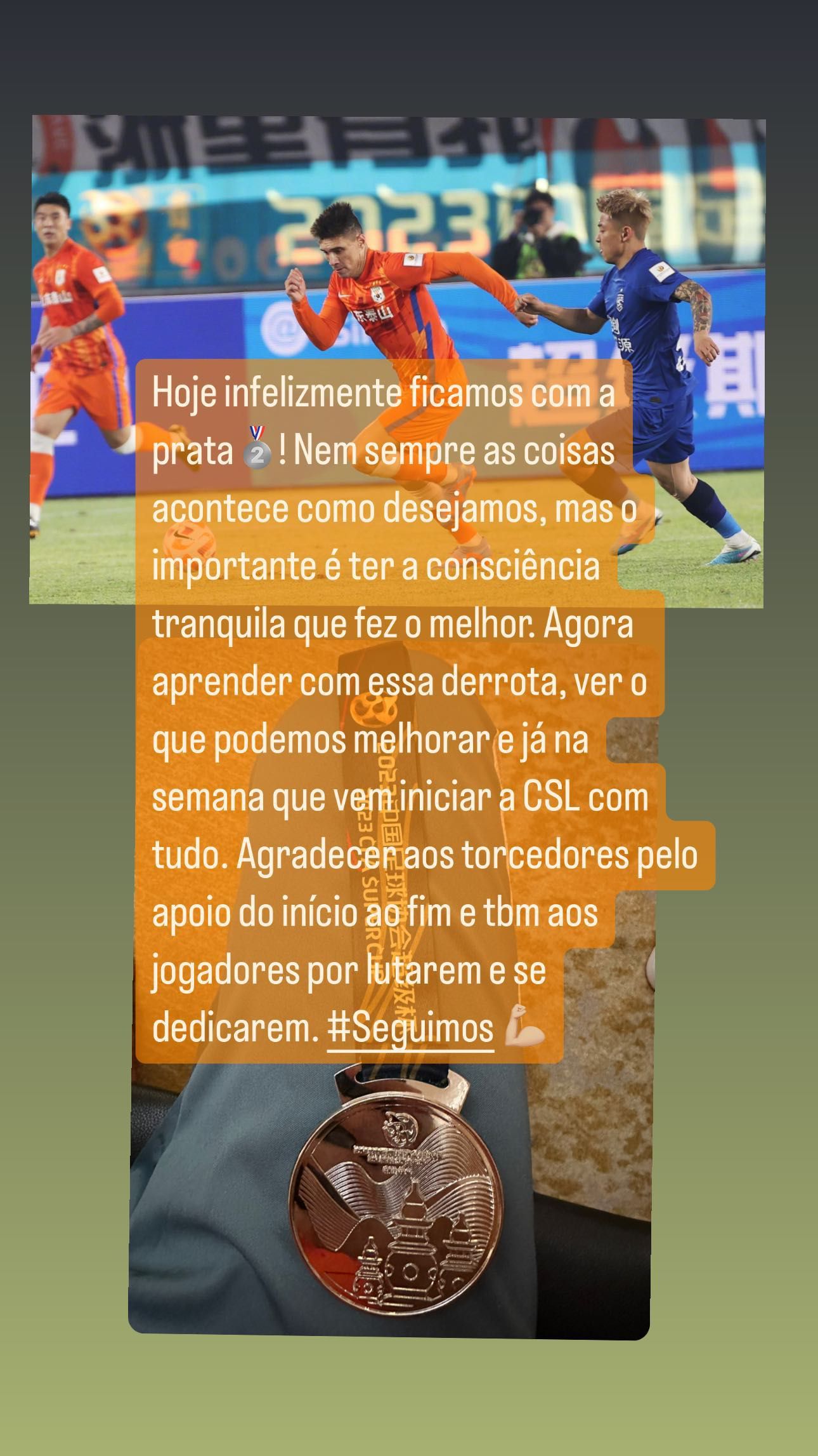 玩球网4月9日讯山东泰山在超级杯0-2不敌武汉三镇,赛后山东泰山外援莫伊塞斯社交媒体发文。“不幸的是今天我们只拿到了银牌,事情并非总是如我们所愿,但是重要的是要保持良好的心态。”“现在我们需要从这次失