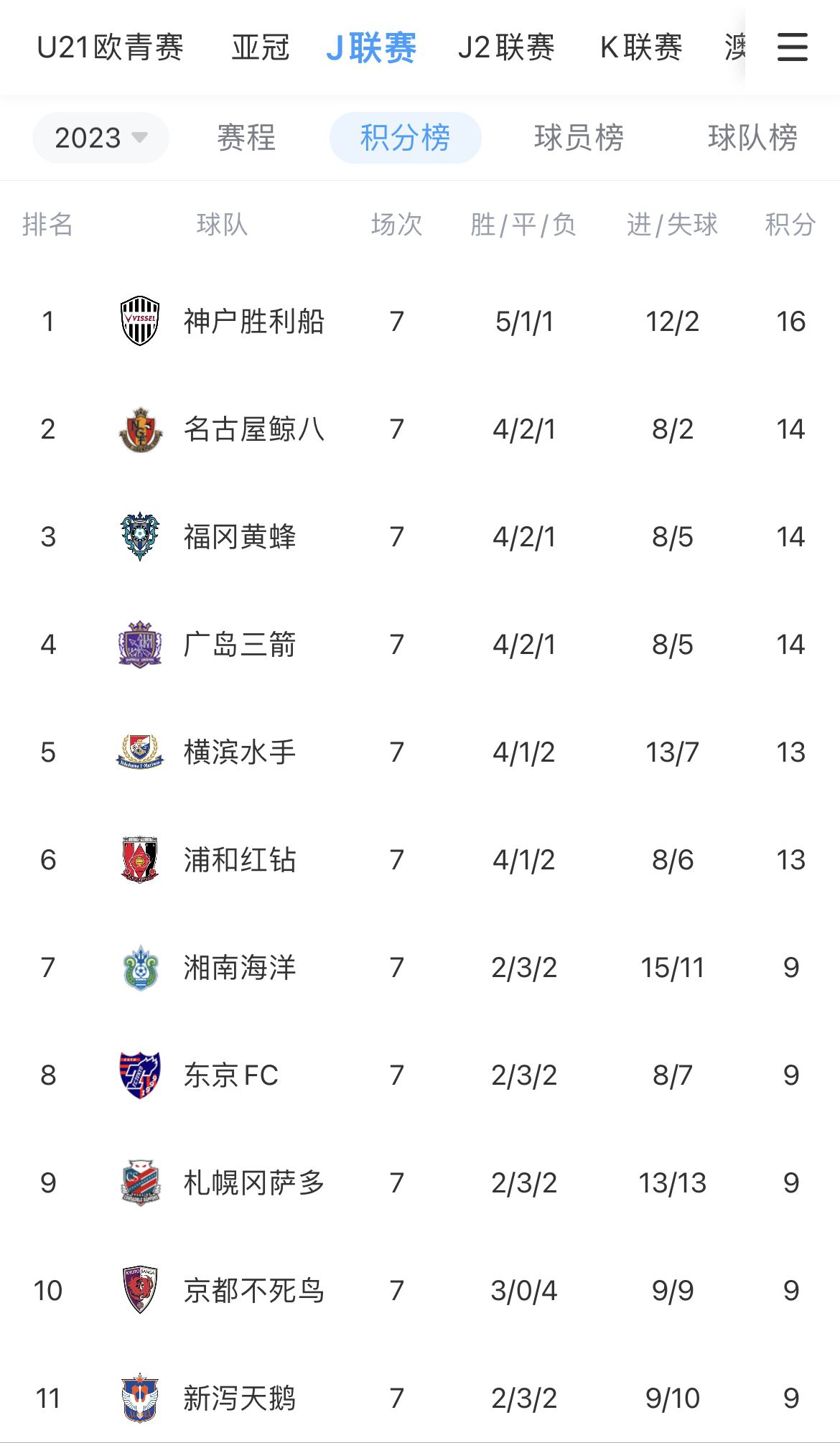 玩球网4月9日讯北京时间今天晚上,J1联赛第7轮全部比赛落下帷幕。已进行的比赛中,神户胜利船尽管0-0闷平新泻天鹅,但球队依旧以2分优势领跑积分榜,伊涅斯塔在比赛第82分钟替补出战迎赛季首秀;“横滨德