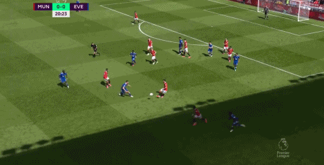 玩球网4月9日讯 曼联2-0战胜埃弗顿第21分钟,桑乔反击中一个急停转身,防守的两名埃弗顿队员格雷和阿马杜-奥纳纳人仰马翻,齐齐倒地。