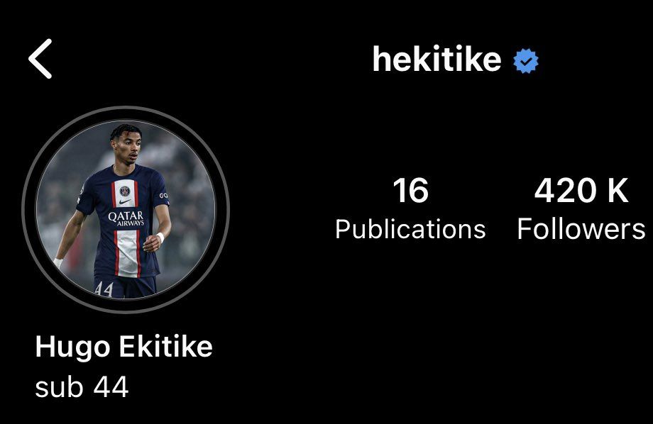 玩球网4月10日讯巴黎球员埃基蒂克更改了他的社媒简介,新的简介为“替补44号(sub44)”。埃基蒂克现年20岁,去年夏天租借来到巴黎踢球,他本赛季各项赛事出战27次,贡献4球3助攻,这位球员近期将他
