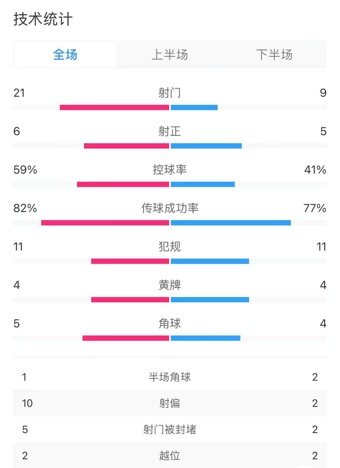 玩球网4月10日讯英超焦点战,利物浦连追2球,2-2战平阿森纳。利物浦vs阿森纳全场数据:射门:21-9射正:6-5控球率:59%-41%传球成功率:82%-77%