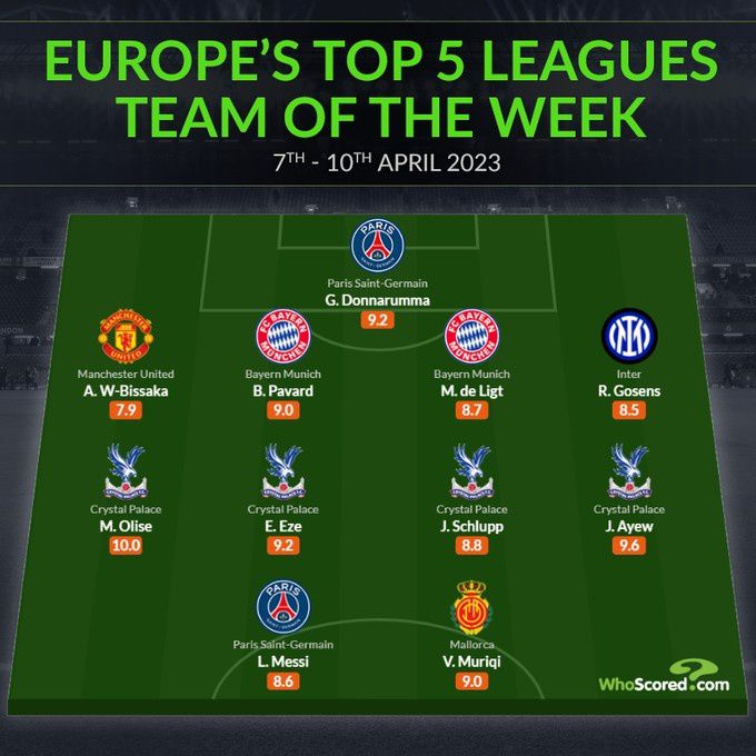 玩球网4月12日讯whoscored统计了本周五大联赛评分最佳阵容,梅西、多纳鲁马领衔。whoscored本周五大联赛最佳阵:门将:多纳鲁马(巴黎,9.2分)后卫:万比萨卡(曼联,7.9分)、帕瓦尔(