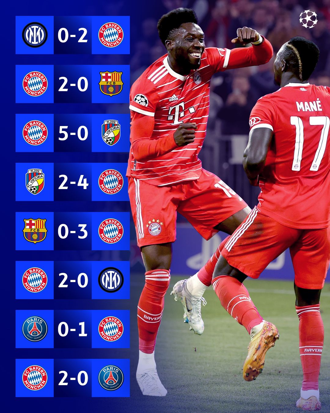 此前的8场欧冠比赛拜仁全部取胜并且有7场零封,只在对阵比尔森胜利的时候丢过2球。