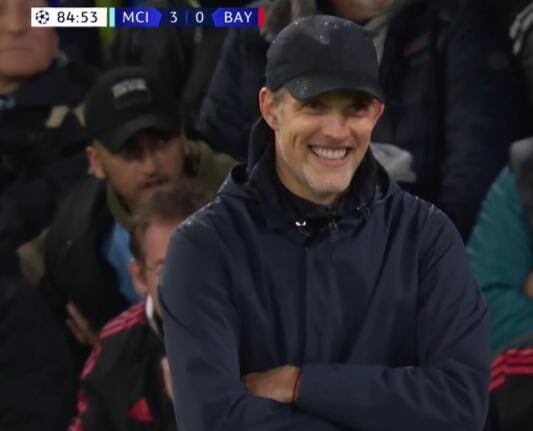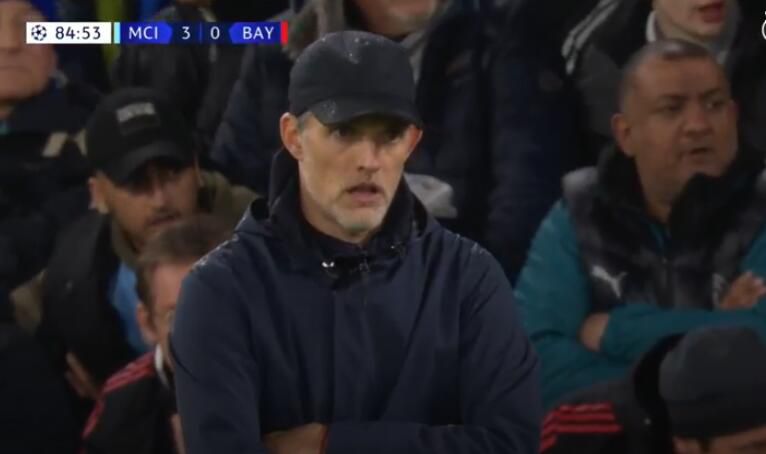 欧冠1/4决赛首回合,拜仁客场0-3不敌曼城。赛后,推特上流传着一张图,在比赛第84分53秒拜仁0-3落后,场边的图赫尔笑得非常灿烂。但回看比赛录像我们发现,在这个时间点,图赫尔并没有笑,他在关注场上