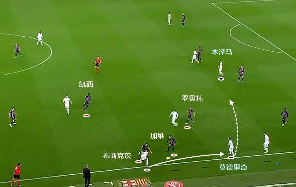 本泽马有能力回撤到中圈之前拿球和传球,带来韦尼休斯空切纵深的机会。