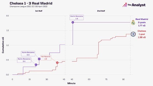 如果本泽马因伤缺席,切尔西又射门效率感人的话,这场比赛也可能出现只开花不结果的平局场面。