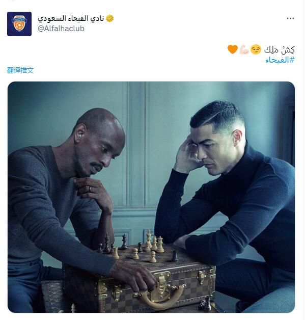 玩球网4月10日讯沙特联第23轮,费哈主场逼平利雅得胜利,C罗、塔利斯卡双双哑火。赛后,费哈官方社媒将此前梅罗对弈照片中的梅西P成了球队队长、后卫萨米-海巴里,并写道:将军!原图↓
