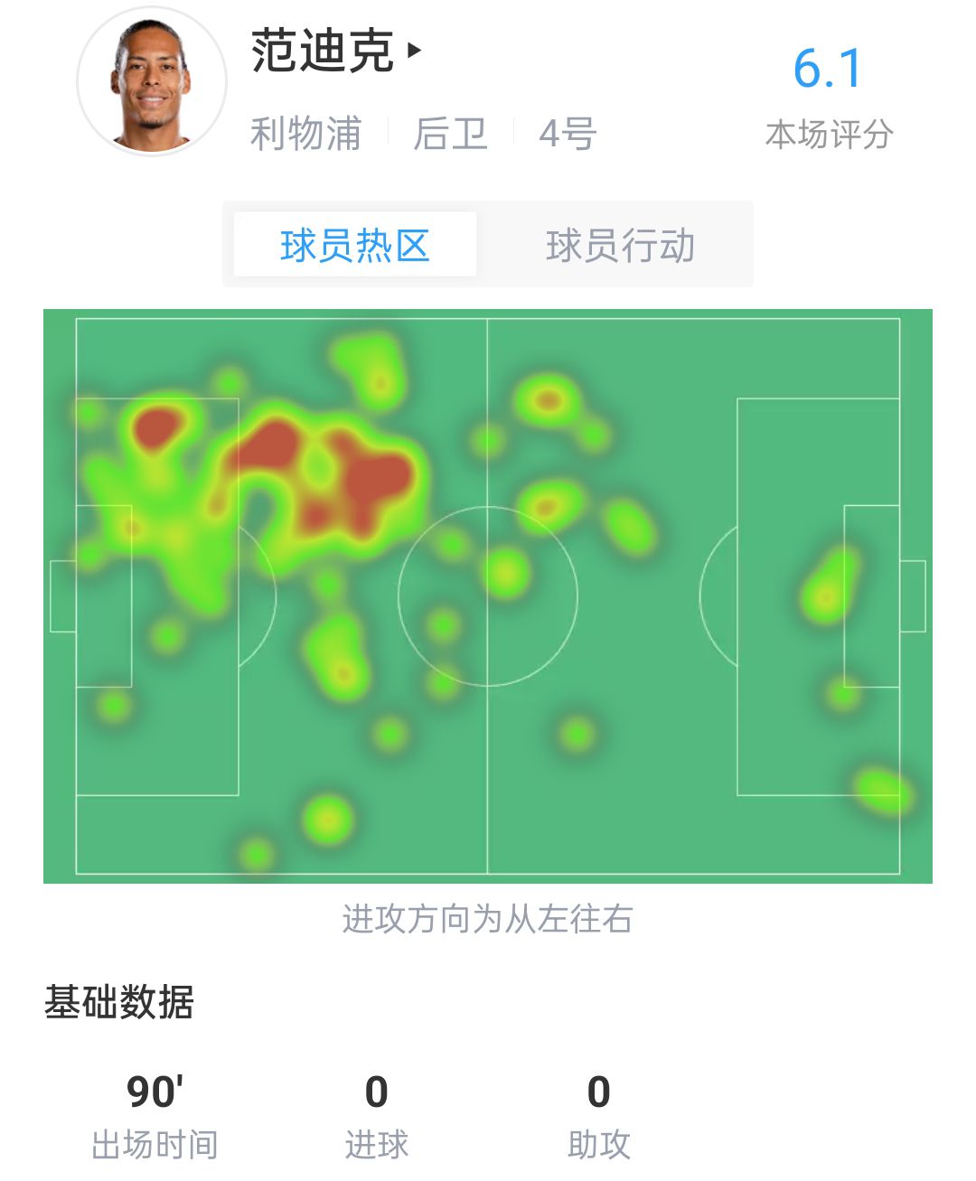 玩球网4月10日讯在今日凌晨结束的一场英超联赛焦点战中,利物浦2-2战平阿森纳。本场比赛,利物浦后卫范迪克贡献4次解围,SofaScore评分6.1分。范迪克具体数据如下:上场时间90分钟进球0助攻0