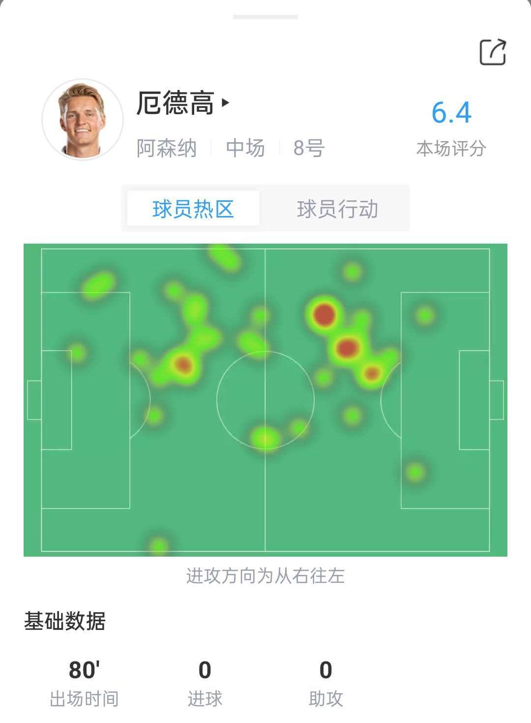 玩球网4月10日讯英超第30轮比赛,阿森纳前往客场挑战利物浦。本场比赛,阿森纳早早就取得了2-0的领先,但最终被利物浦以2-2的比分逼平。本场比赛,阿森纳队长厄德高出战80分钟,然后被换下。赛后技术统