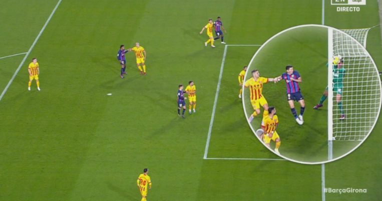 玩球网4月11日讯西甲第28轮,巴塞罗那主场迎战赫罗纳,比赛上半场,阿劳霍的一次打门距离进球只差一点。