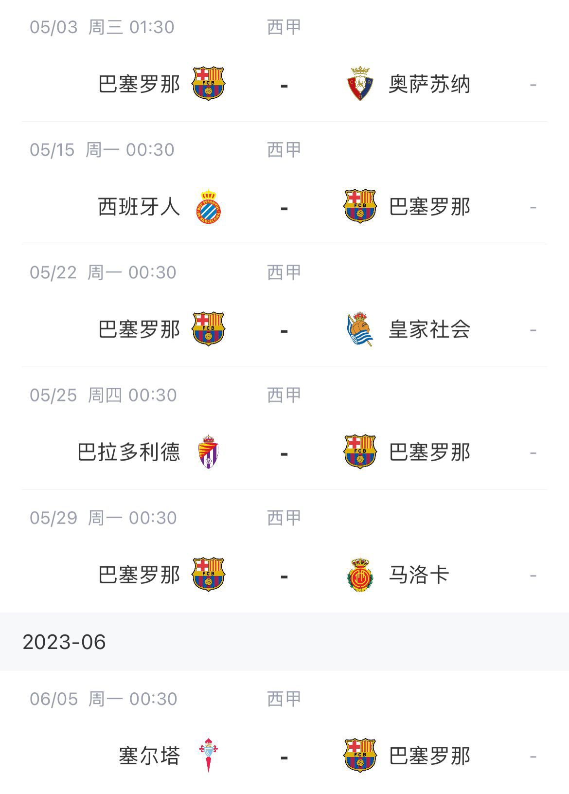 西甲已经进行到28轮,巴萨13分优势领跑,他们再赢6场联赛即可锁定冠军。 巴萨目前以72分排在第一,第二的皇马只有59分。本赛季两场直接对决中,巴萨客场1-3、主场2-1皇马,相互战绩处于劣势。因此,在还剩10场的情况下,他们还需18分才能夺冠。 巴萨本赛季只剩西甲一条战线: |