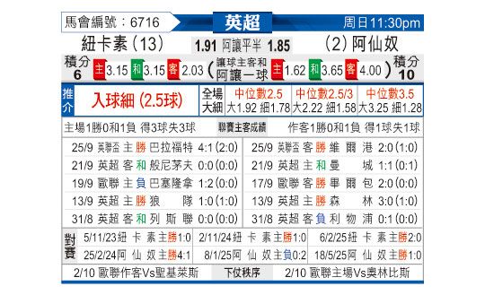 纽卡斯尔联,阿森纳,大乐透,排列三,双色球,预测,快乐8,福彩3D,利物浦,阿森纳,水晶宫,巴塞罗那,神户胜利船,纽卡斯尔联,斯图加特,马洛卡,切尔西,广岛三箭,本菲卡,皇家马德里,西班牙人,皇家贝蒂斯,伯恩利,毕尔巴鄂竞技,诺丁汉森林,马德里竞技,莱万特,多特蒙德,那不勒斯,马赛,曼城,狼队,富勒姆,布莱顿,阿斯顿维拉,巴列卡诺,国际米兰,塞维利亚,科莫,罗马,埃尔切,布伦特福德,AC米兰,比利亚雷亚尔,奥萨苏纳,埃弗顿,利兹联,阿拉维斯,乌德勒支,尼斯,尤文图斯,柏太阳神,弗拉门戈,浦和红钻,TBD,
