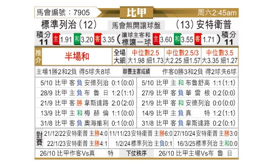 [比甲] 标准列日vs安特卫普