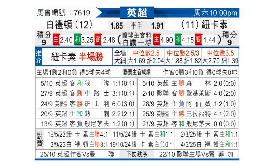 [英超] 布莱顿vs纽卡斯尔联
