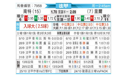 南特,里尔,大乐透,排列三,双色球,预测,快乐8,福彩3D,利物浦,阿森纳,巴塞罗那,水晶宫,广岛三箭,切尔西,斯图加特,纽卡斯尔联,神户胜利船,诺丁汉森林,罗马,阿斯顿维拉,那不勒斯,马赛,马德里竞技,皇家贝蒂斯,马洛卡,皇家马德里,多特蒙德,毕尔巴鄂竞技,国际米兰,埃弗顿,西班牙人,本菲卡,伯恩利,博洛尼亚,富勒姆,布莱顿,尤文图斯,比利亚雷亚尔,法兰克福,狼队,尼斯,塞维利亚,都灵,摩纳哥,莱万特,勒沃库森,奥萨苏纳,里尔,TBD,曼城,巴列卡诺,柏太阳神,巴伦西亚,里昂,AC米兰,热那亚,科莫,弗