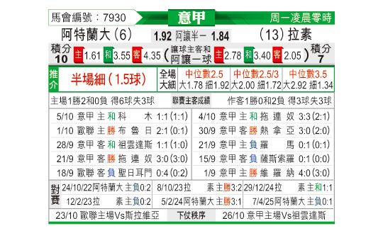 亚特兰大,拉齐奥,大乐透,排列三,双色球,预测,快乐8,福彩3D,利物浦,阿森纳,巴塞罗那,水晶宫,广岛三箭,切尔西,斯图加特,纽卡斯尔联,神户胜利船,诺丁汉森林,罗马,阿斯顿维拉,那不勒斯,马赛,马德里竞技,皇家贝蒂斯,马洛卡,皇家马德里,多特蒙德,毕尔巴鄂竞技,国际米兰,埃弗顿,西班牙人,本菲卡,伯恩利,博洛尼亚,富勒姆,布莱顿,尤文图斯,比利亚雷亚尔,法兰克福,狼队,尼斯,塞维利亚,都灵,摩纳哥,勒沃库森,奥萨苏纳,莱万特,TBD,里尔,曼城,柏太阳神,巴伦西亚,里昂,巴列卡诺,热那亚,科莫,AC米