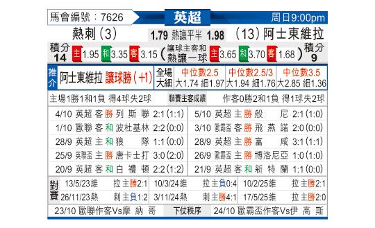 托特纳姆热刺,阿斯顿维拉,大乐透,排列三,双色球,预测,快乐8,福彩3D,利物浦,阿森纳,巴塞罗那,水晶宫,广岛三箭,切尔西,斯图加特,纽卡斯尔联,神户胜利船,诺丁汉森林,罗马,阿斯顿维拉,那不勒斯,马赛,马德里竞技,皇家贝蒂斯,马洛卡,多特蒙德,毕尔巴鄂竞技,国际米兰,皇家马德里,埃弗顿,西班牙人,本菲卡,伯恩利,博洛尼亚,富勒姆,布莱顿,尤文图斯,比利亚雷亚尔,狼队,尼斯,塞维利亚,都灵,摩纳哥,法兰克福,勒沃库森,奥萨苏纳,莱万特,TBD,曼城,柏太阳神,里尔,巴伦西亚,里昂,巴列卡诺,热那亚,科莫
