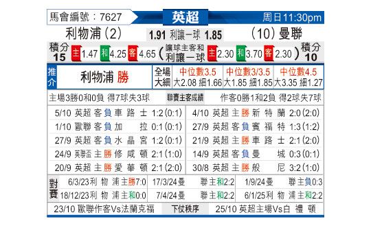 利物浦,曼彻斯特联,大乐透,排列三,双色球,预测,快乐8,福彩3D,利物浦,阿森纳,巴塞罗那,水晶宫,广岛三箭,切尔西,斯图加特,纽卡斯尔联,神户胜利船,诺丁汉森林,罗马,阿斯顿维拉,那不勒斯,马赛,马德里竞技,皇家贝蒂斯,马洛卡,皇家马德里,多特蒙德,毕尔巴鄂竞技,国际米兰,埃弗顿,西班牙人,本菲卡,伯恩利,博洛尼亚,富勒姆,布莱顿,尤文图斯,比利亚雷亚尔,法兰克福,狼队,尼斯,塞维利亚,都灵,摩纳哥,勒沃库森,奥萨苏纳,莱万特,TBD,里尔,曼城,柏太阳神,巴伦西亚,里昂,巴列卡诺,热那亚,科莫,AC